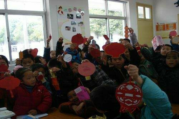 二年级的教室里挂满了各式各样的灯笼,这些色彩绚丽,玲琅满目的作品都来自于该年级师生之手。中国结、红灯笼、新春剪纸,绳子上更是悬挂着近百道灯谜……活动现场被学生和老师们装点一新,到处洋溢着元宵佳节浓郁的气息。